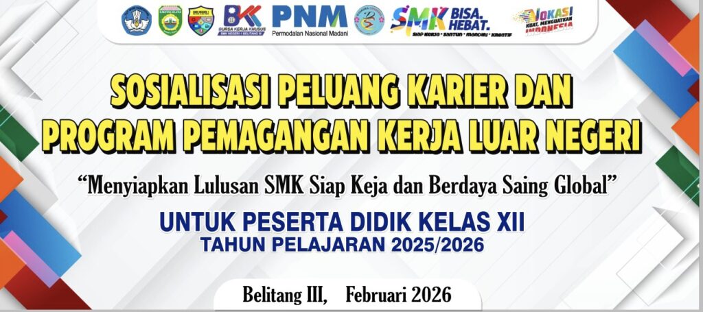 BELITANG III – Dalam upaya memperluas cakrawala karier para lulusannya, SMK Negeri 1 Belitang III menyelenggarakan kegiatan Sosialisasi Peluang Karier dan Program Pemagangan Kerja Luar Negeri pada Kamis (05/02). Acara yang berlangsung di Aula sekolah ini menghadirkan langsung perwakilan dari Permodalan Nasional Madani (PNM) sebagai mitra strategis.