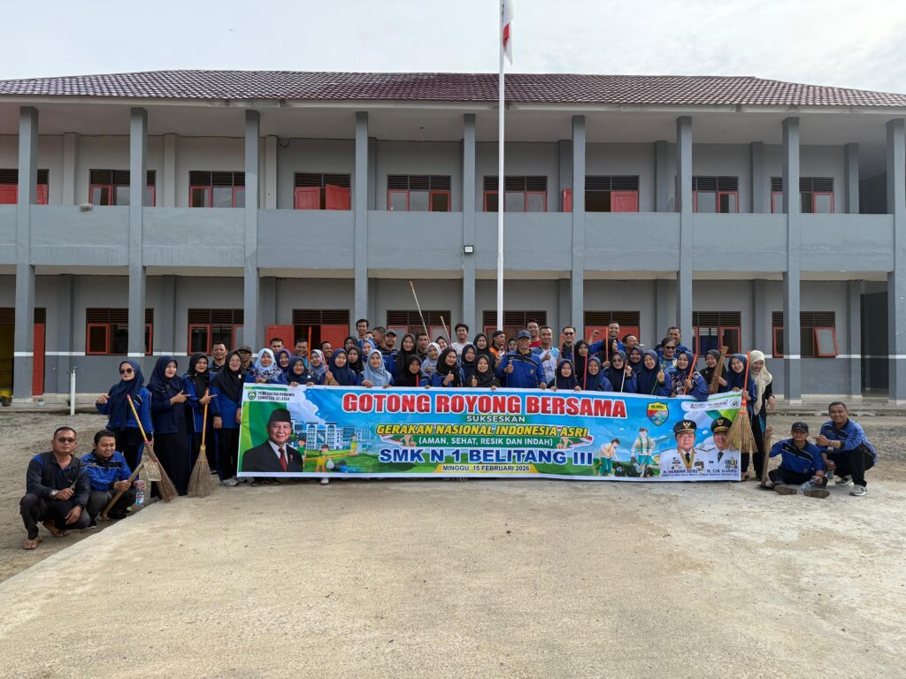 BELITANG III – Menindaklanjuti instruksi dari Dinas Pendidikan Provinsi Sumatera Selatan yang merujuk pada Surat Edaran Sekretaris Daerah Provinsi Sumatera Selatan Nomor: 438/SE/DLHP/2026, SMK Negeri 1 Belitang III secara serentak melaksanakan aksi gotong royong kebersihan lingkungan sekolah. Kegiatan ini merupakan bagian dari Gerakan Nasional Indonesia Asri (Aman, Sehat, Resik, dan Indah) yang dilaksanakan secara masif di seluruh wilayah provinsi.