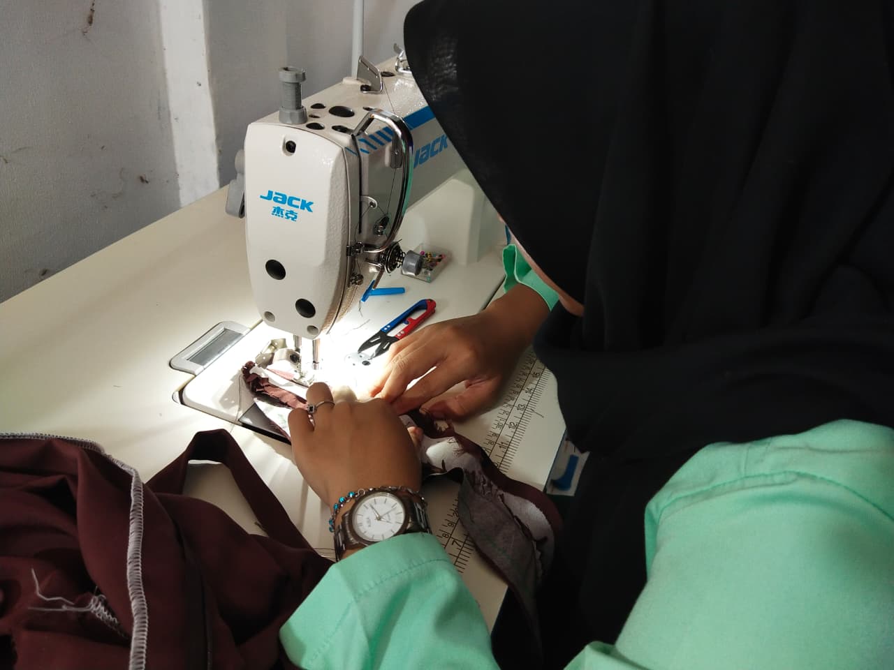 Menjahit Bagian Busana: Keterampilan merakit komponen busana menjadi satu kesatuan.