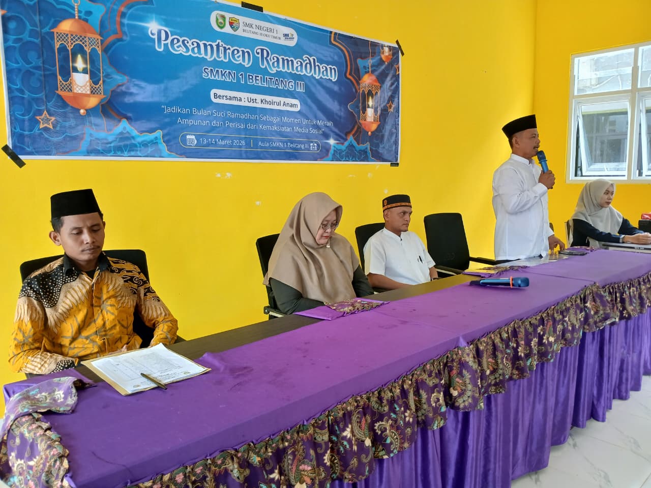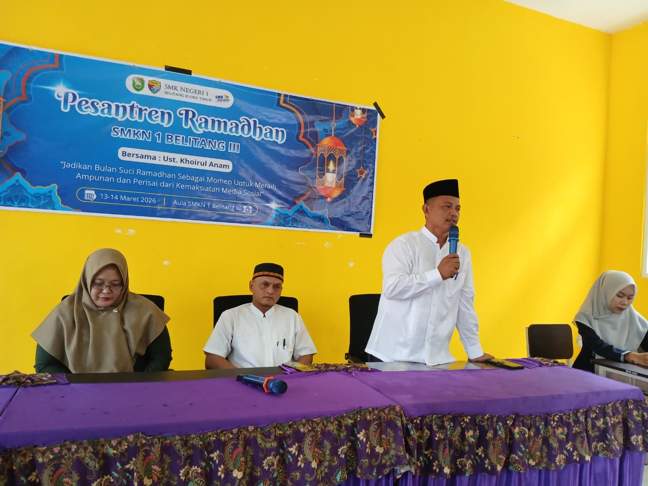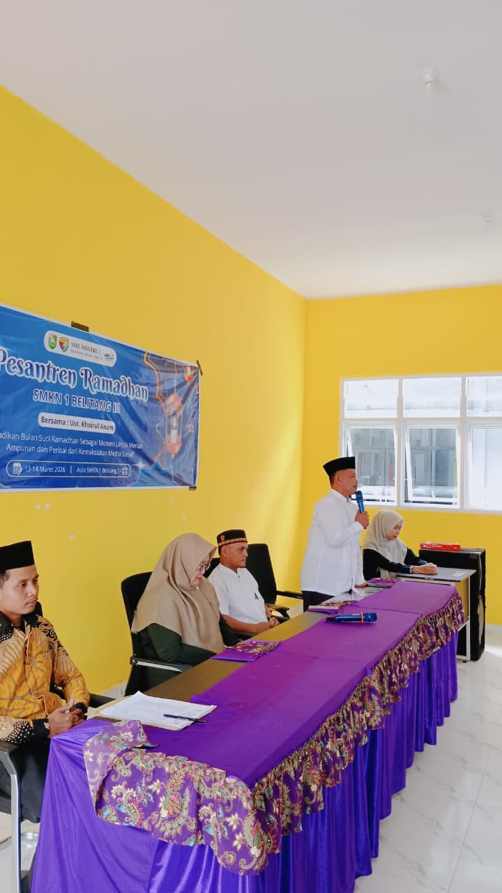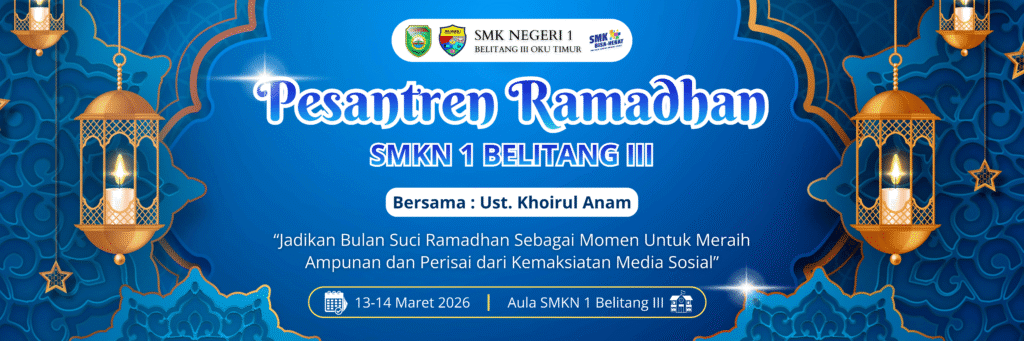BELITANG III, 13 Maret 2026 – Suasana khidmat menyelimuti lingkungan SMK Negeri 1 Belitang III pagi ini. Seluruh warga sekolah berkumpul untuk mengikuti pembukaan Pesantren Ramadhan 1447 H yang resmi dimulai pada Jumat, 13 Maret 2026. Kegiatan ini dibuka secara resmi oleh Bapak Sukisno, S.Pd., selaku Wakil Kepala Sekolah Bidang Kesiswaan, yang mewakili kepala sekolah.